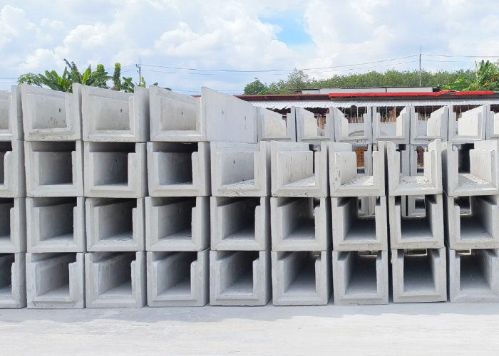 รางระบายน้ำคอนกรีตใช้เพื่อ ประเภท ขนาด (เมตร) ลำเลียงน้ำไปยังจุดที่ต้องการ กำลังการผลิตสูงสุดต่อวัน โดยมีข้อดี คือ สามารถขุดลอกและบำรุงรักษาได้ เมื่อเกิดการอุดตัน โดยสามารถผลิตได้ทั้งแบบโรงงานและตามแบบที่ลูกค้าต้องการ